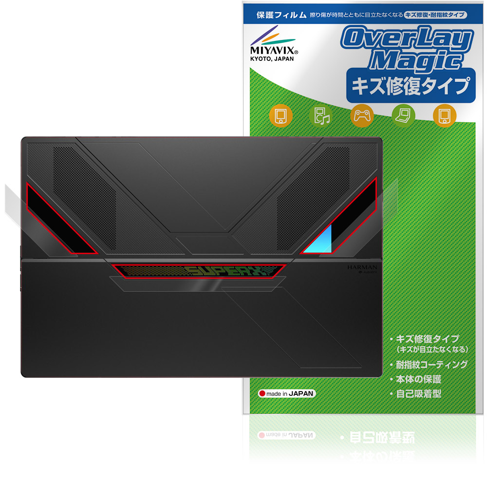 背面RGBライト部に貼るだけでキズ付きやホコリからしっかりガードしてくれます。また、透明度が高い為、貼ることで美しい艶と高級感を与えてくれます。